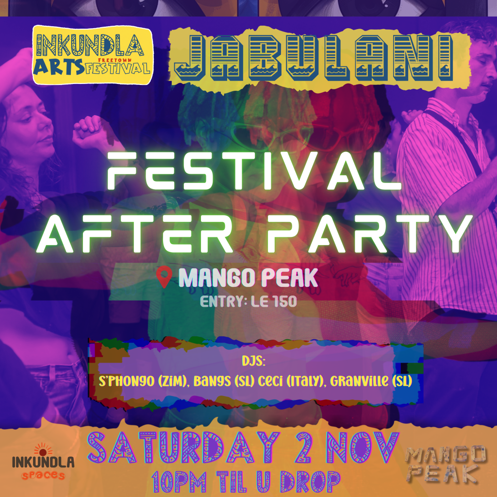 To close off the Inkundla Arts Festival, we’re excited to host an epic After Party curated by Jabulani Be Happy, a group dedicated to spreading the vibes of house music across Sierra Leone through DJ events.
