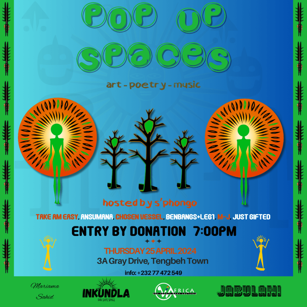 Missing Take Am Easy and Ansumana, the fifth installation of pop up spaces was magical. Our featured poets opened their scars through verse inspiring what is the longest open mic session we’ve had at pop up spaces. BenBangs & Leg1 a hip hop group sent us home with some exceptional beatbox and to tier bars to elevate the experience.