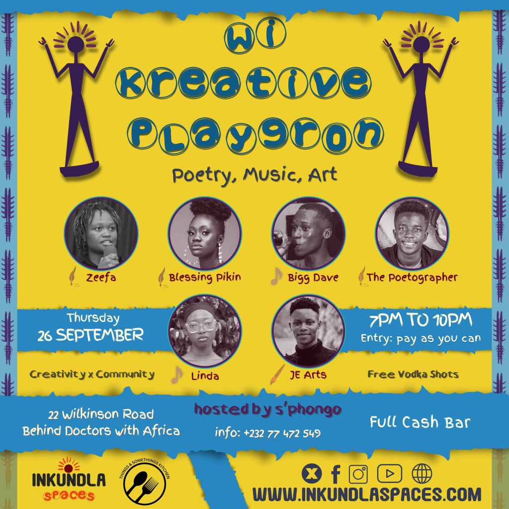 We’ll be gathering at 22 Wilkinson Road, Behind Doctors with Africa. The event starts at 7 pm and ends at 10 pm—don’t be late, and don’t miss out on this opportunity to immerse yourself in an evening of artistic brilliance. This month’s edition promises to be a kaleidoscope of creativity, so mark your calendars and get ready for another magical night of Wi Kreative Playgron! See you on September 26th!